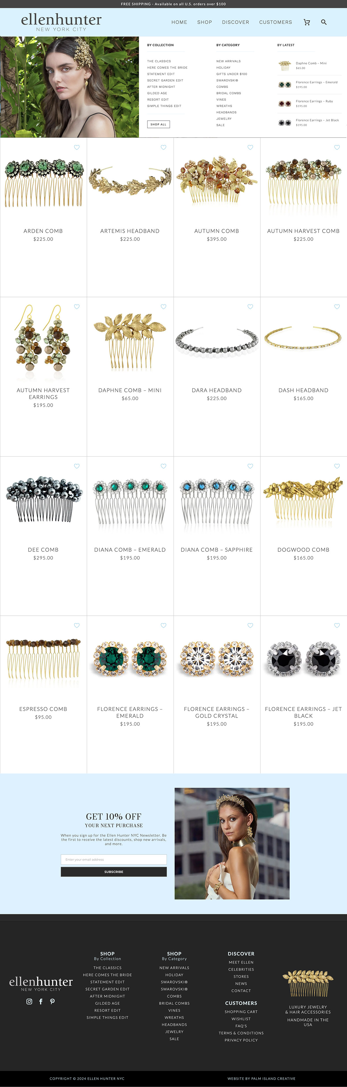 We’ve worked alongside Ellen for many years, guiding the brand with intention as it evolved from handcrafted bridal pieces into a refined, fashion-forward collection of luxury hair accessories and jewelry. As the collections and designs grew, the website evolved alongside them, becoming a natural extension of the brand rather than a conventional e-commerce storefront. Our ongoing goal has been to create a curated online experience that reflects the elegance, craftsmanship, and artistry behind each piece.